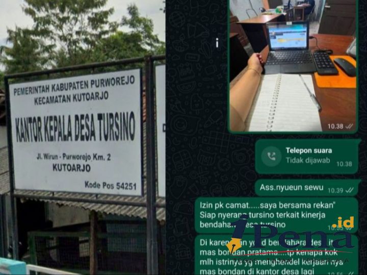 Purworejo, Monitor-Online.My.Id — 15/12/2025. Dugaan ketidakhadiran bendahara desa inisial BP dan pelimpahan tugas kepada pihak yang tidak berwenang mencuat di Desa Tursino, Kecamatan Kutoarjo, Kabupaten Purworejo. Informasi ini beredar melalui percakapan WhatsApp yang diterima redaksi, disertai foto aktivitas di lingkungan kantor desa.