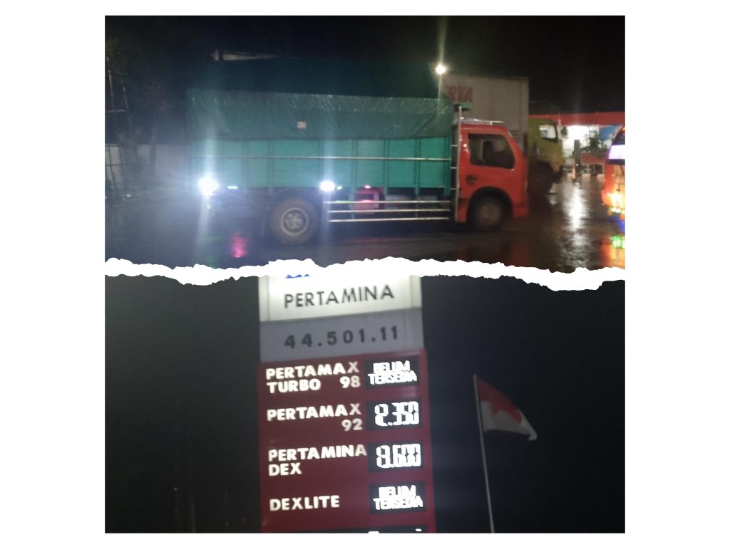 Informasi tersebut dihimpun awak media berdasarkan hasil penelusuran dan pemantauan langsung di lokasi pada Kamis (29/1/2026) sekitar pukul 19.45 WIB. Dari hasil observasi lapangan, terpantau puluhan kendaraan truk melakukan pengisian solar bersubsidi secara berulang dengan pola tertentu. Salah satu kendaraan yang terpantau yakni truk berkabin merah dan bak hijau dengan nomor polisi KH 8174 MD.