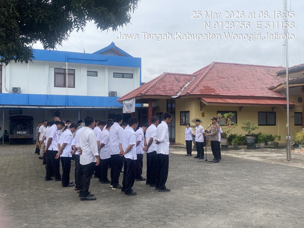 Apel yang dimulai pukul 08.00 WIB tersebut dipimpin oleh Camat Jatiroto Miran dan dihadiri Kapolsek Jatiroto AKP Pudiyono, Sekcam Jatiroto, para kepala desa/lurah se-Kecamatan Jatiroto, serta perwakilan dinas dan instansi terkait.