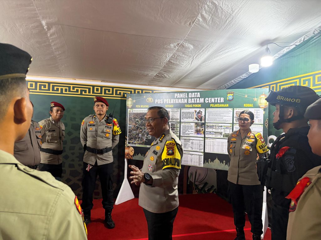 BATAM,Monitor-online.my.id – Dalam rangka memastikan kesiapan pengamanan dan pelayanan kepada masyarakat selama arus mudik dan arus balik Idulfitri 1447 H, Karendalopsda Operasi Ketupat Seligi 2026 Karoops Polda Kepri, Kombes Pol. Taswin, S.I.K., M.H., bersama Kasatgas Humas Ops Ketupat Seligi 2026 Kabidhumas Polda Kepri, Kombes Pol. Dr. Nona Pricillia Ohei, S.I.K., S.H., M.H., melaksanakan peninjauan langsung ke Pos Pelayanan Batam Center. Senin (16/3/2026)