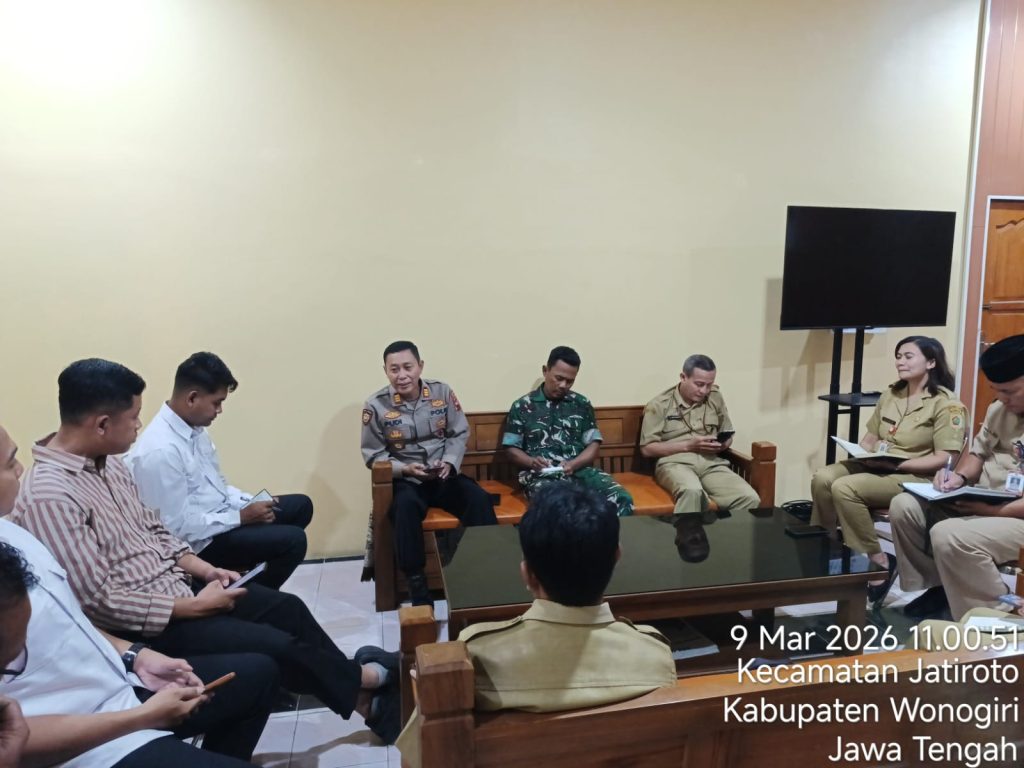 WONOGIRI Monitor Online.My.Id — Aparat TNI-Polri bersama pemerintah kecamatan melakukan monitoring dan evaluasi pelaksanaan program Makan Bergizi Gratis (MBG) di wilayah Kecamatan Jatiroto, Kabupaten Wonogiri, Senin (9/3/2026).