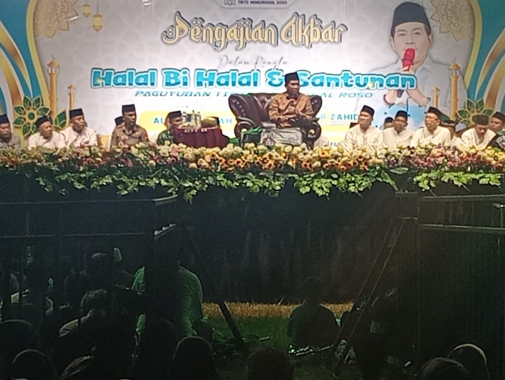 Wonogiri,Monitor-online.my.id — Pengajian akbar dalam rangka Halal Bihalal dan santunan yang digelar Paguyuban Perantauan Tirto Manunggal Roso Tirtomoyo berlangsung khidmat di Lapangan Sepakbola Pertinggen, Kelurahan Tirtomoyo, Kecamatan Tirtomoyo, Kabupaten Wonogiri, Kamis (26/3/2026) malam.