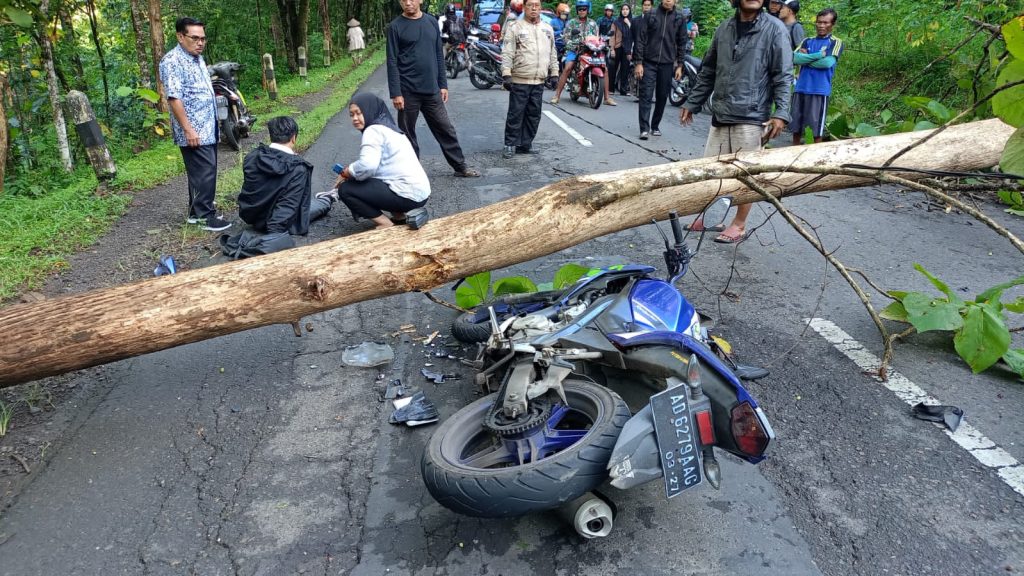 Pengendara Motor Luka-Luka Akibat Tabrak Pohon Tumbang di Nguntoronadi