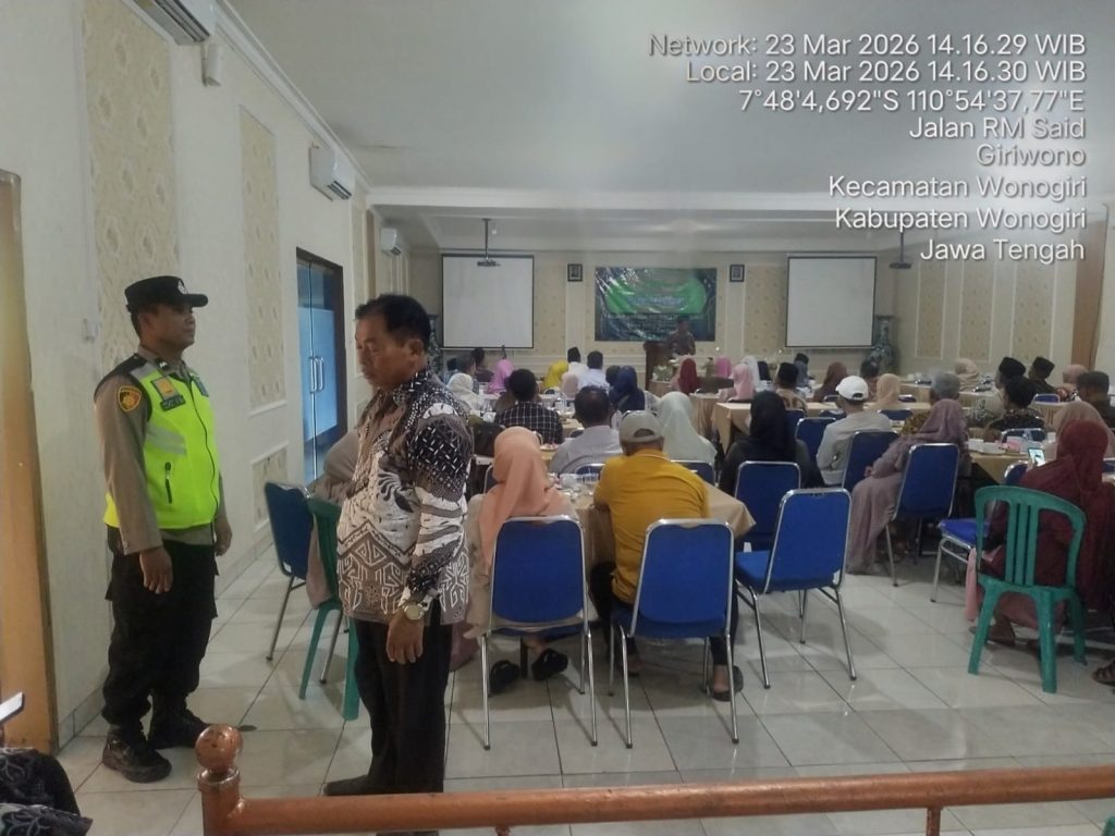 Wonogiri,Monitor-online.my.id — Jajaran Polres Wonogiri melalui Polsek Wonogiri Kota melaksanakan pengamanan kegiatan Halal Bihalal dan pengajian alumni SMEA Negeri 1 Wonogiri angkatan 70/80 yang digelar di Graha Saraswati, Jalan RM Said, Joho Lor, Giriwono, Kabupaten Wonogiri, Senin (23/3/2026) siang.