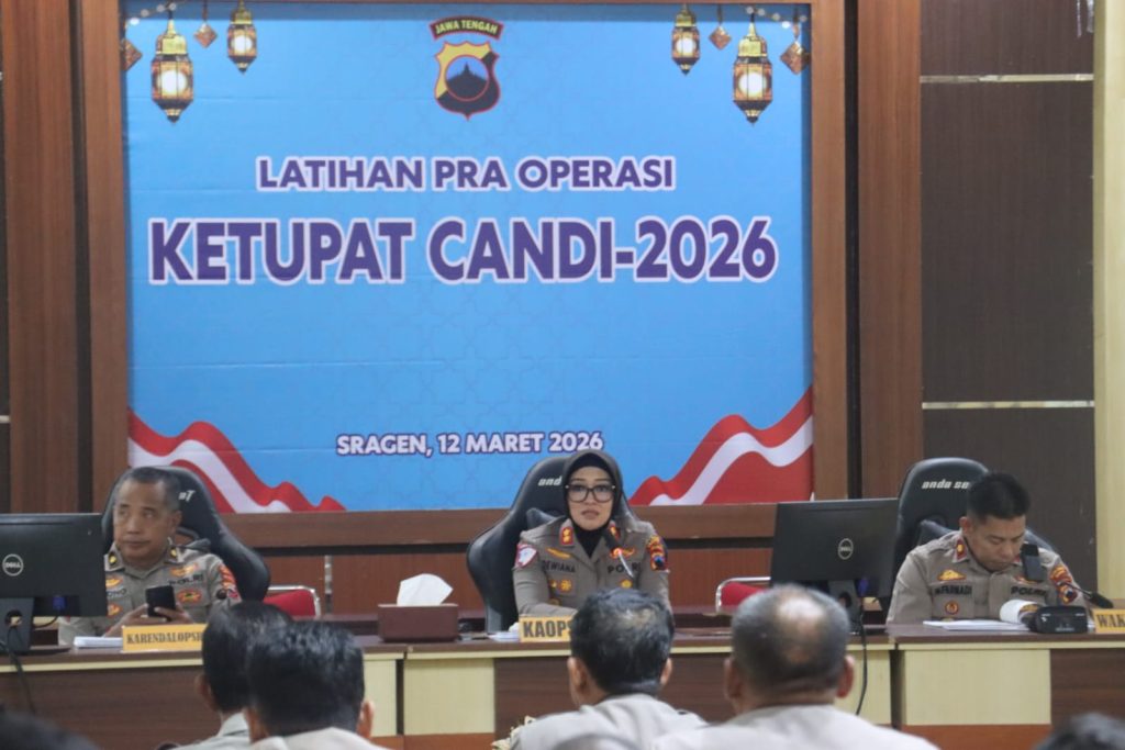 Sragen, Jateng monitor online.My.Id– feelPolres Sragen menggelar Latihan Pra Operasi (Lat Pra Ops) Ketupat Candi 2026 sebagai langkah mematangkan kesiapan pengamanan arus mudik dan balik Hari Raya Idul Fitri 1447 H. Kegiatan yang dilaksanakan di Aula Satya Haprabu Mapolres Sragen tersebut diikuti para pejabat utama serta personel yang akan terlibat dalam operasi pengamanan Lebaran tahun 2026.