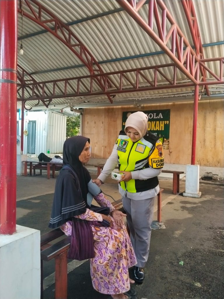Dalam kegiatan tersebut, petugas memberikan layanan pemeriksaan kesehatan gratis berupa pengecekan tekanan darah (tensi) serta pemberian vitamin untuk membantu meningkatkan daya tahan tubuh masyarakat.
