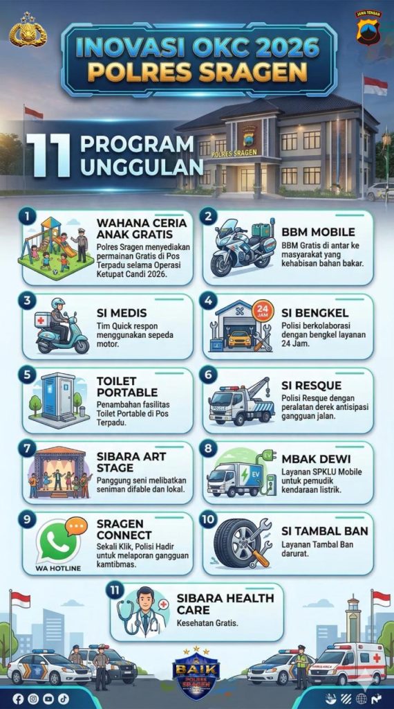 Melalui berbagai inovasi tersebut, Polres Sragen berupaya menghadirkan pelayanan yang tidak hanya cepat dan responsif, tetapi juga ramah dan berkesan bagi masyarakat selama momentum mudik Lebaran 2026.