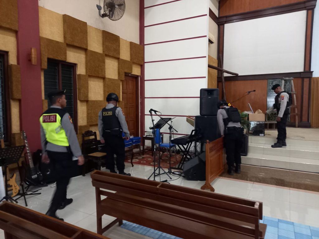 Dalam pelaksanaannya, petugas melakukan pemeriksaan menyeluruh pada area gereja, meliputi ruang ibadah, ruang VIP, gudang, toilet, instalasi listrik, sound system, pintu, jendela, hingga lingkungan sekitar gereja.